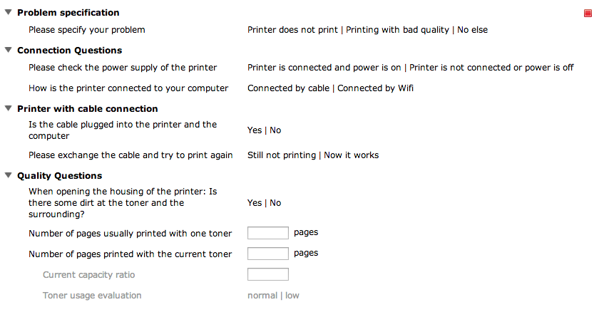 A simple test dialog interface for the knowledge vase can be created by the markup QuickInterview: